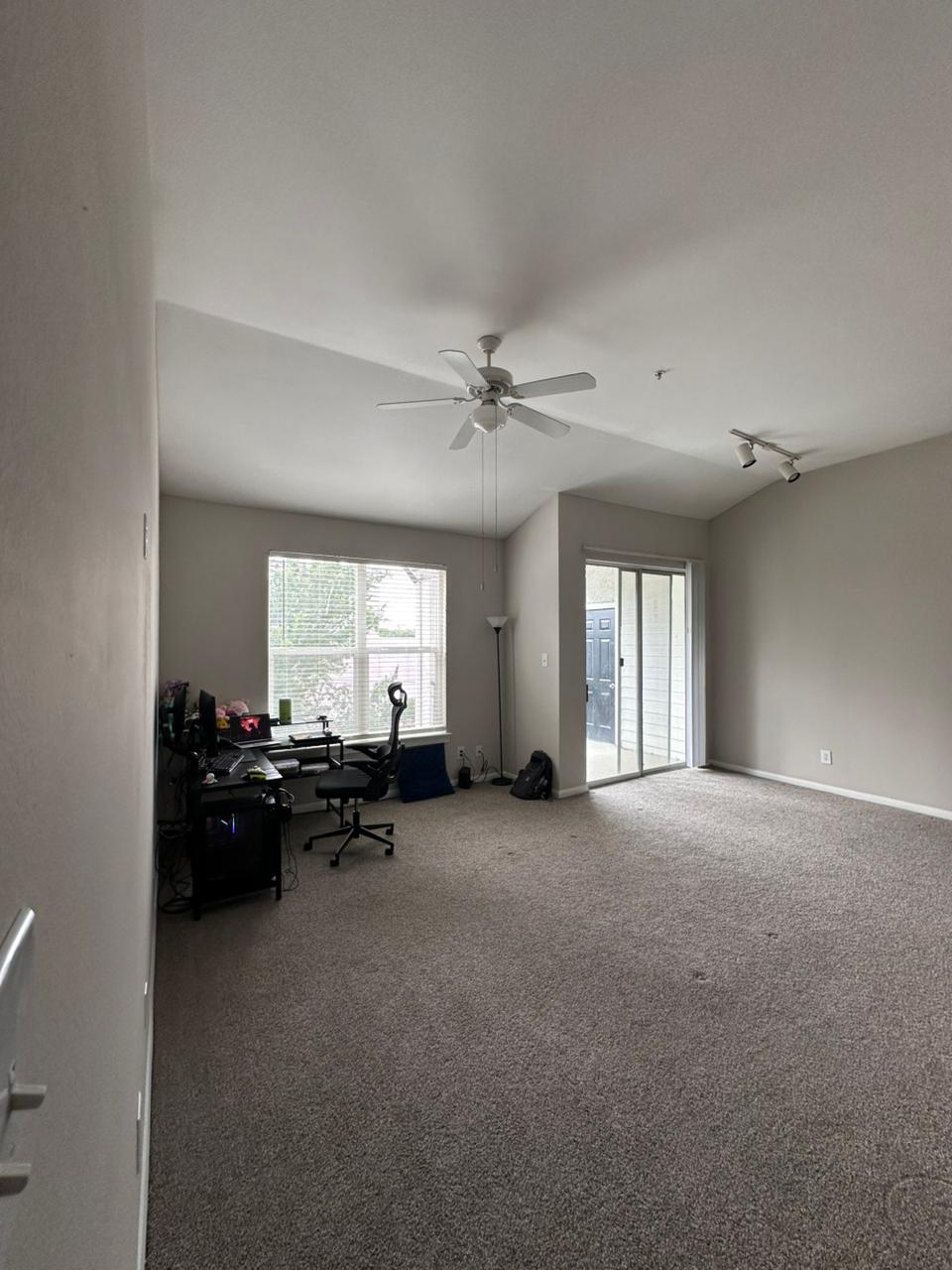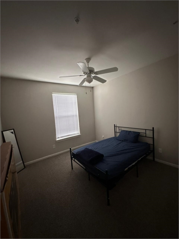 Can come furnished (includes full size bed frame, full size hybrid mattress barely used with cover, L-shaped desk, ergonomic chair, sofa, TV, bar stools, etc.)